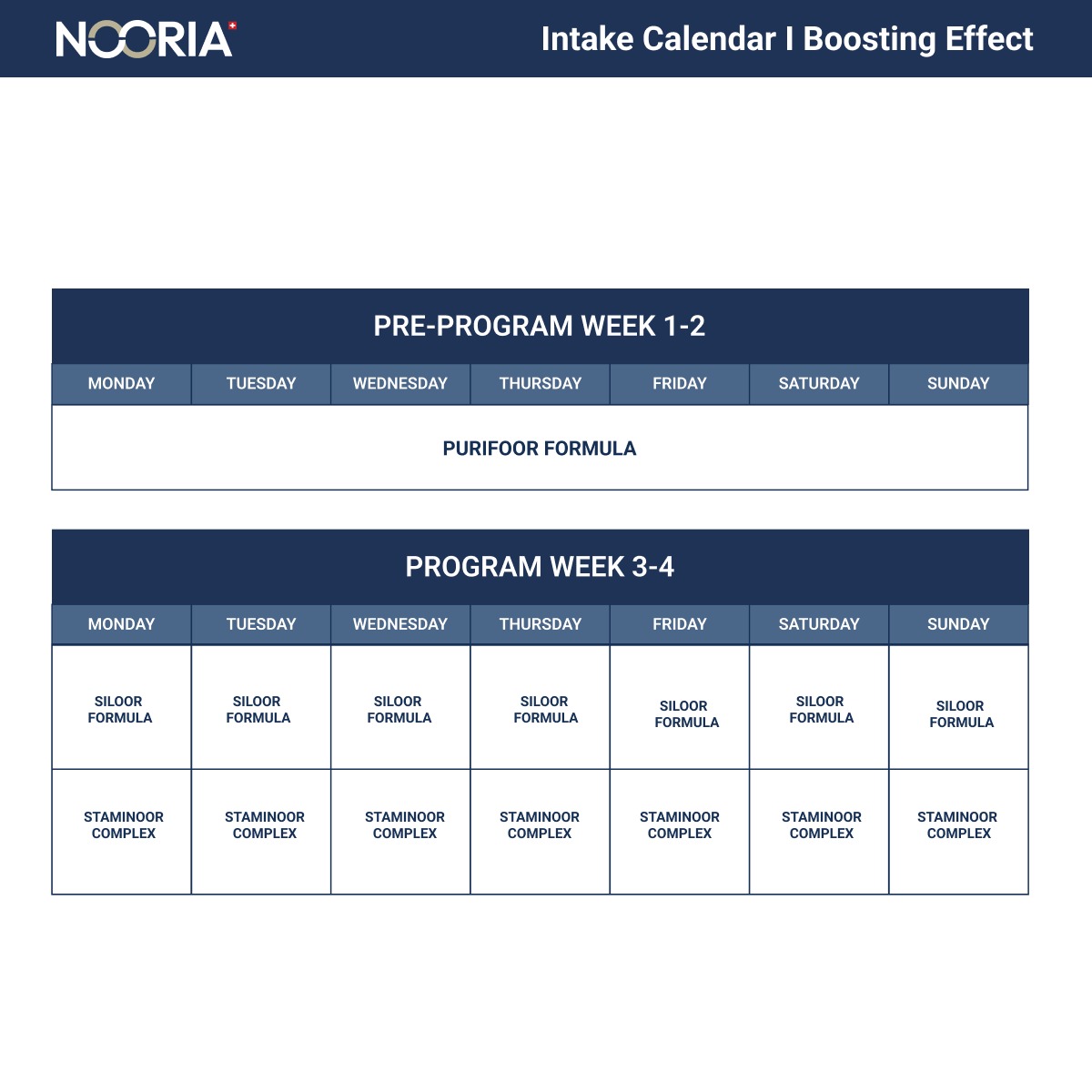 Staminoor Complex: Take one pouch every other day. Please note that each pouch contains five pills, which should be taken with a sufficient amount of water.